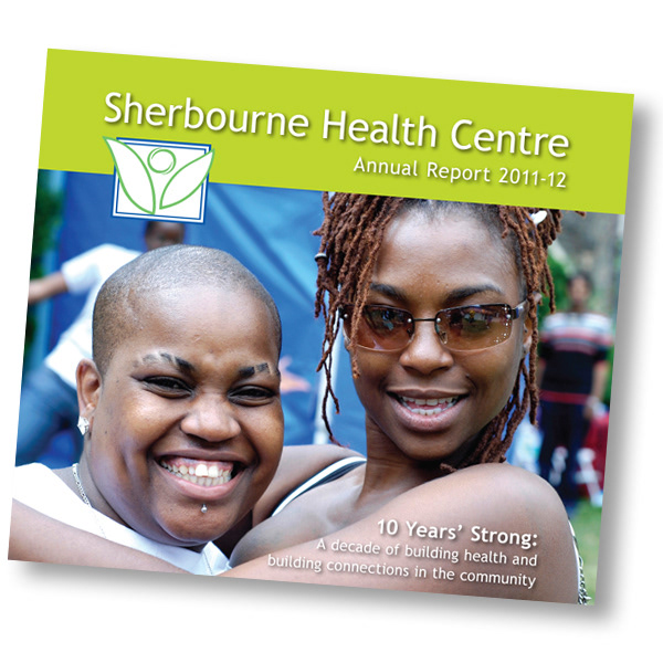 I've worked on a few Annual Reports for Sherbourne Health Centre over the years - however, I especially liked the most recent reports' new layout and size format. Different than previous years, this report moved to a quare page size and utalizes white space and solids for a clean and modern 'blocked' design.
