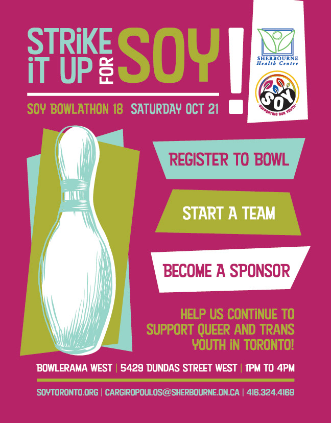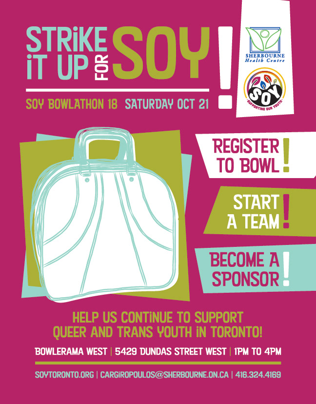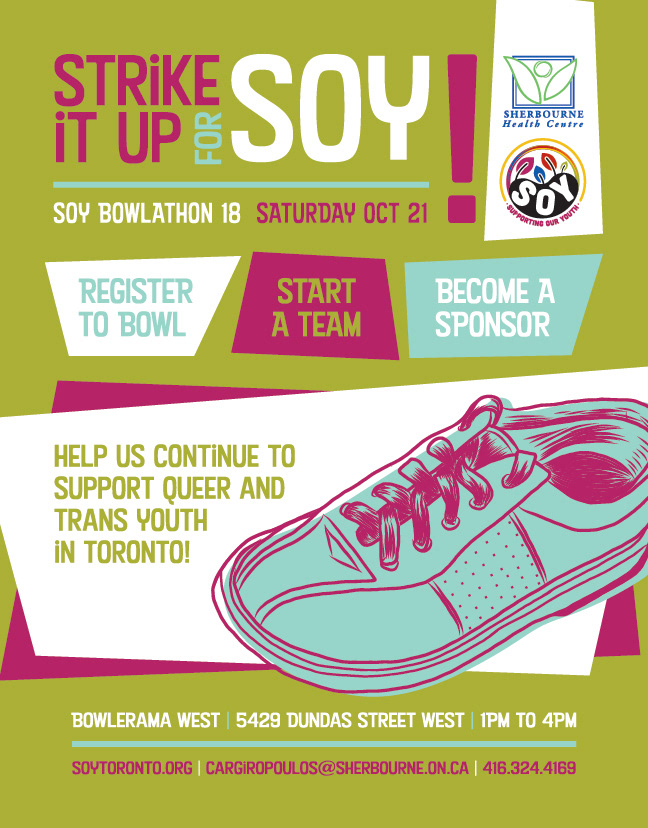 I was happy to be approached for the second year in row to design the annual theme and collateral materials for the Supporting Our Youth Bowlathon. We decided on a minimal, modern and hand drawn theme with a series fo 4 different posters.