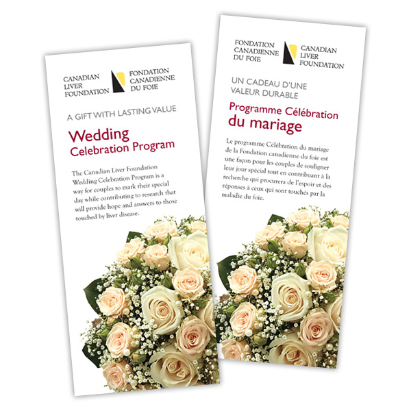 This tri-fold brochure was developed by the Canadian Liver Foundation for their Wedding Donation Program. Both English and French version were created and are available online, as well as in printed form.